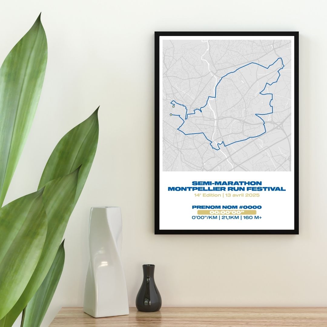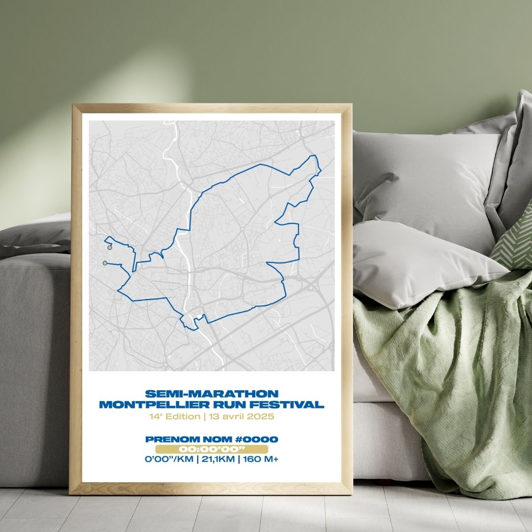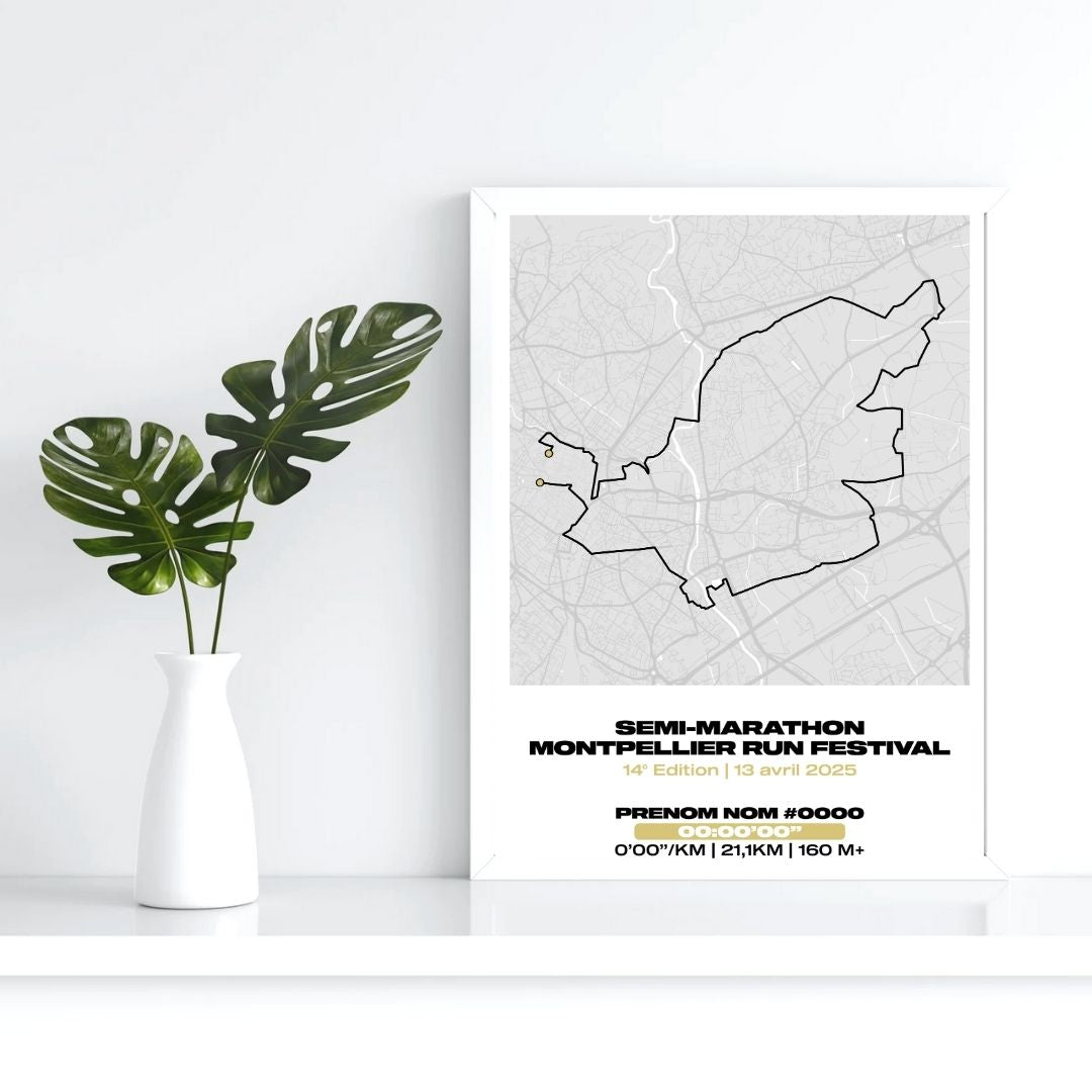 Revivez votre aventure au Semi-Marathon de Montpellier avec une affiche personnalisée qui met en lumière votre parcours et votre détermination. Un souvenir intemporel pour garder une trace de cette course mémorable !
